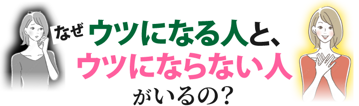 うつになる人、ならない人、その最大の違いは考え方。うつになる人は、いやなこと、よくないことばかりに目が行き、うれしいこと、楽しいことに目が向かなくなっていく傾向があります。